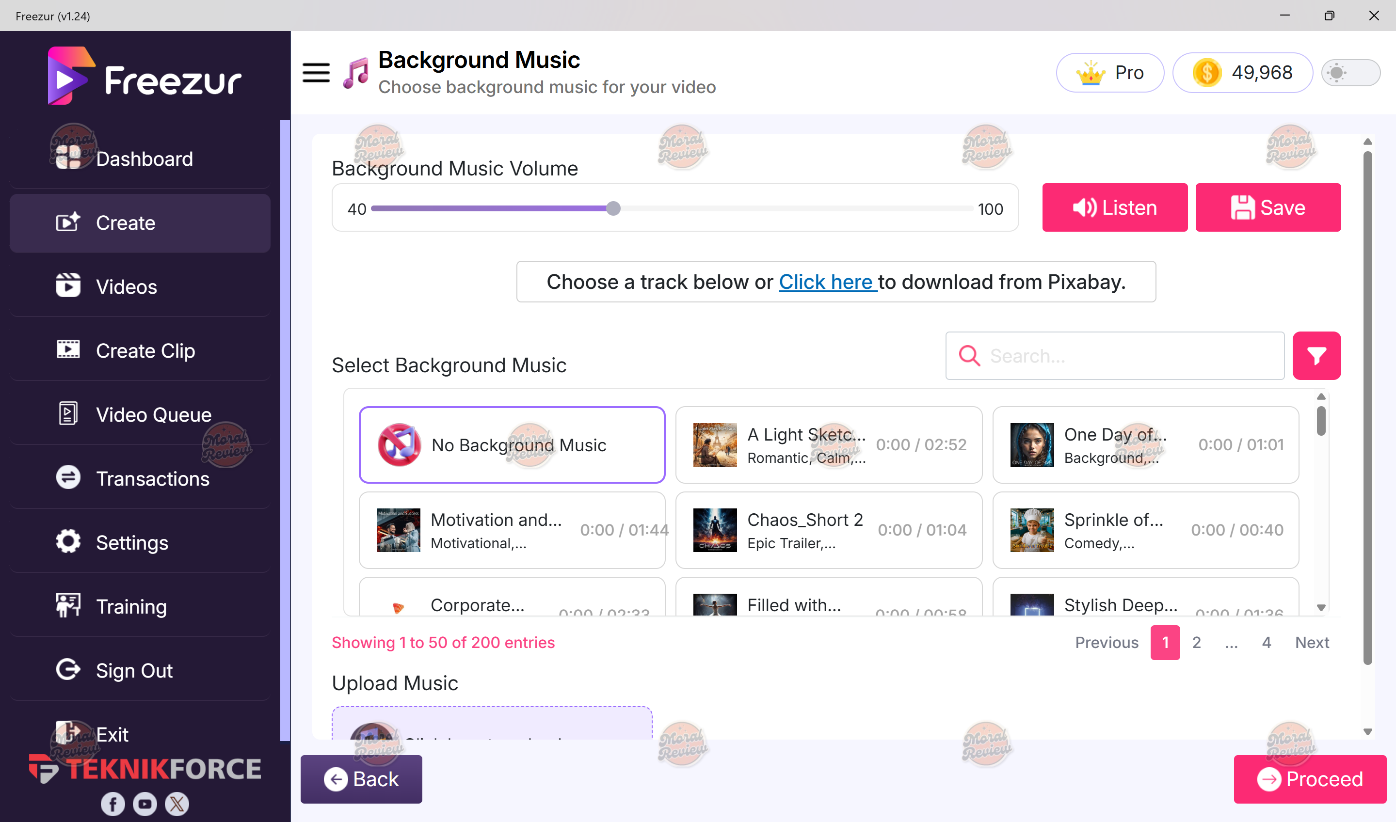 Then, you can choose the background music track. You can also use external audio file, but be careful for this.